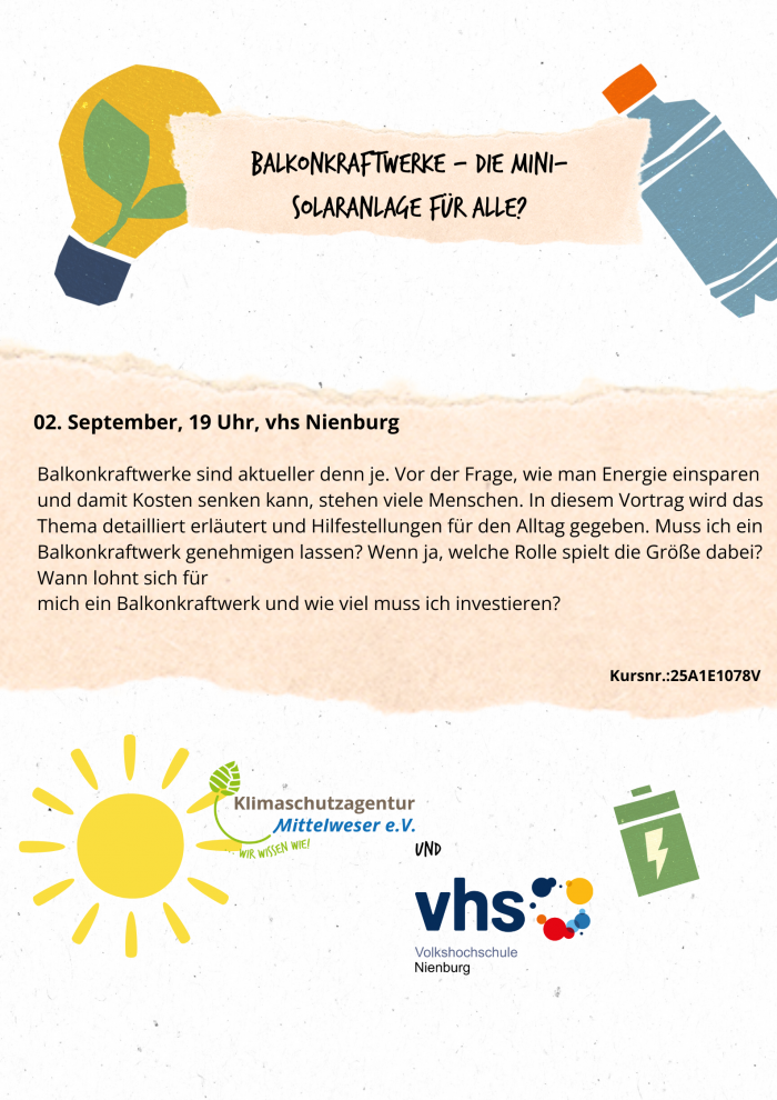 Veranstalter: | Klimaschutzagentur Mittelweser + vhs Nienburg |