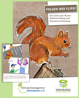 Damit das Eichhörnchen und die dazugehörigen Themen den Weg an den Abendbrottisch finden, wurde Flipsi in einem Mitmach-Comic festgehalten, welcher von Frau Silberfisch entworfen wurde.