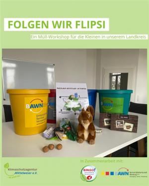 In welche Tonne gehört eigentlich mein kaputtes Spielzeug? Und wie können wir Müll vermeiden? Diese und viele weitere Fragen beschäftigen nicht nur die Großen, sondern auch die Kleinen. Um gemeinsam eine Antwort darauf zu finden, haben wir mit Unterstützung der Bingo Umweltstiftung und dem BAWN den Workshop "Folgen wir Flipsi" entwickelt.